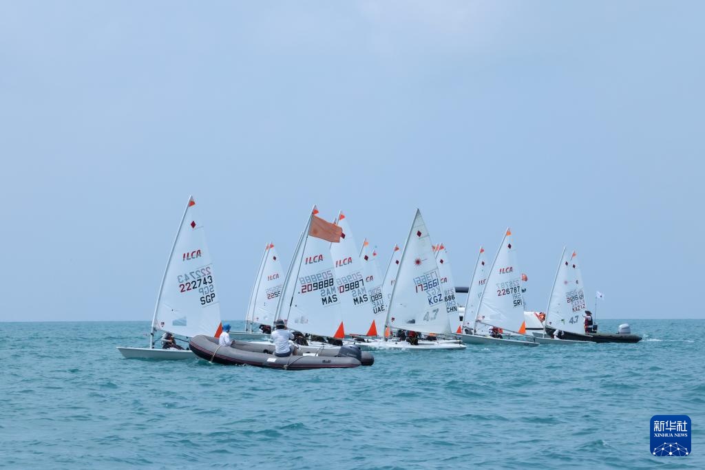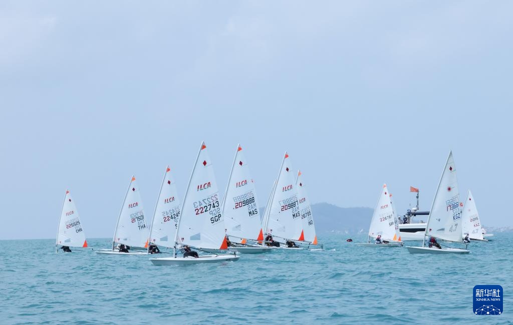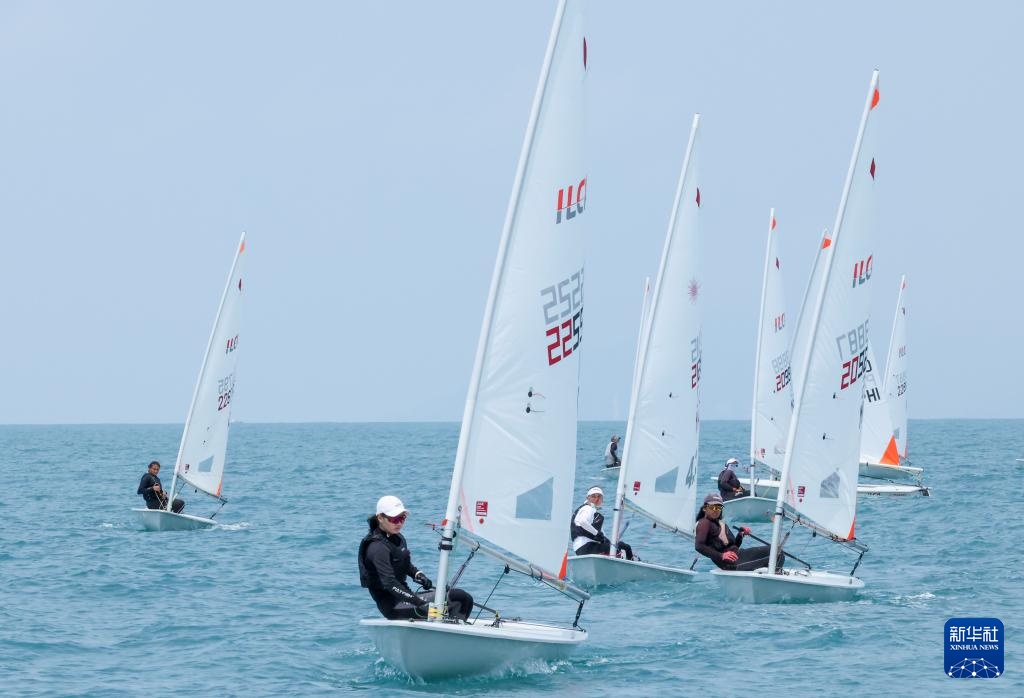 4月23日,选手们在ILCA4帆船女子第1轮比赛中。新华社记者 张帆 摄
