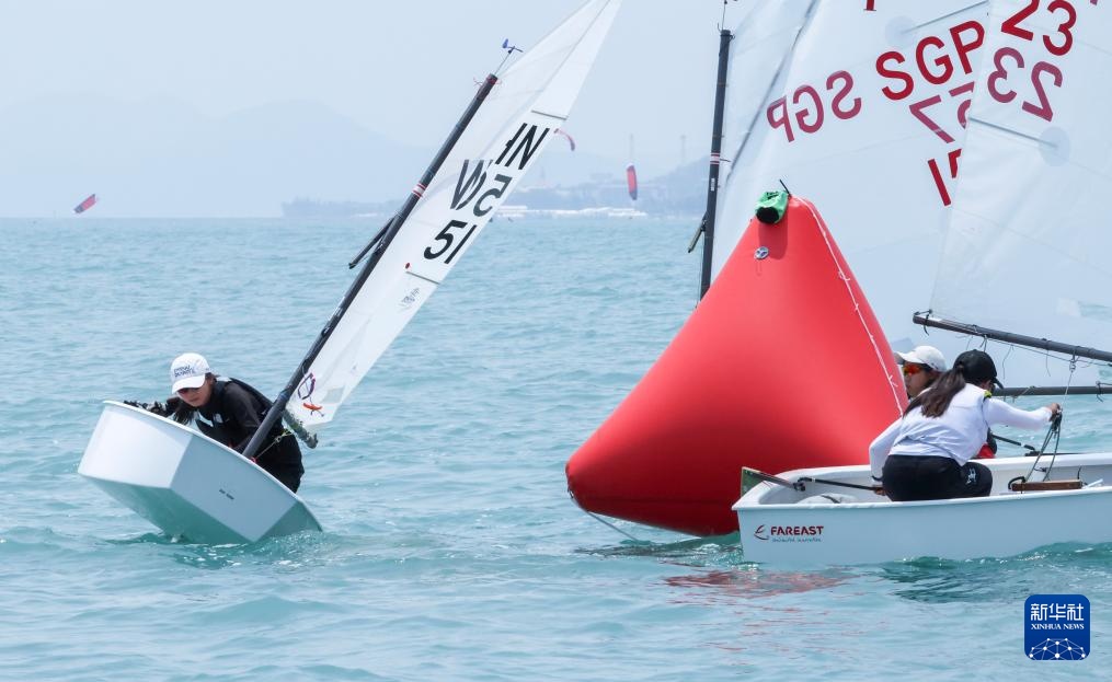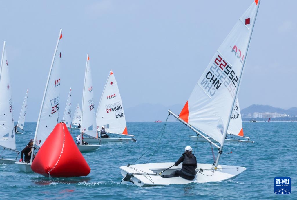 4月23日,中国选手颜果果在ILCA4帆船女子第1轮比赛绕过浮标。新华社记者 张帆 摄
