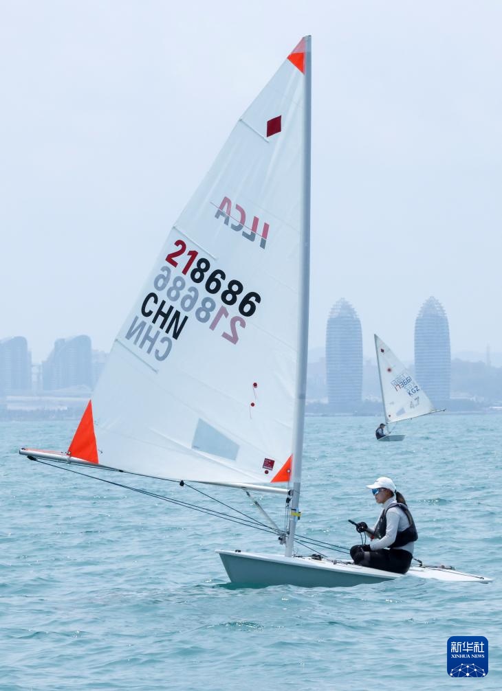 4月23日,中国选手王雅格在ILCA4帆船女子第1轮比赛中。新华社记者 张帆 摄