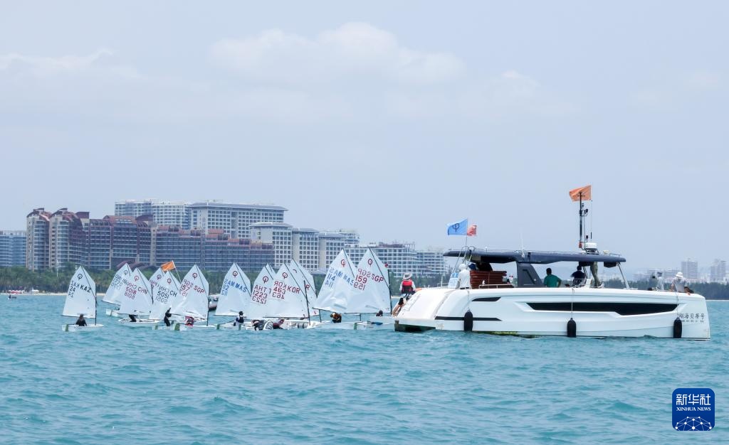 4月23日,选手们在OP帆船女子第1轮比赛中出发。新华社记者 张帆 摄